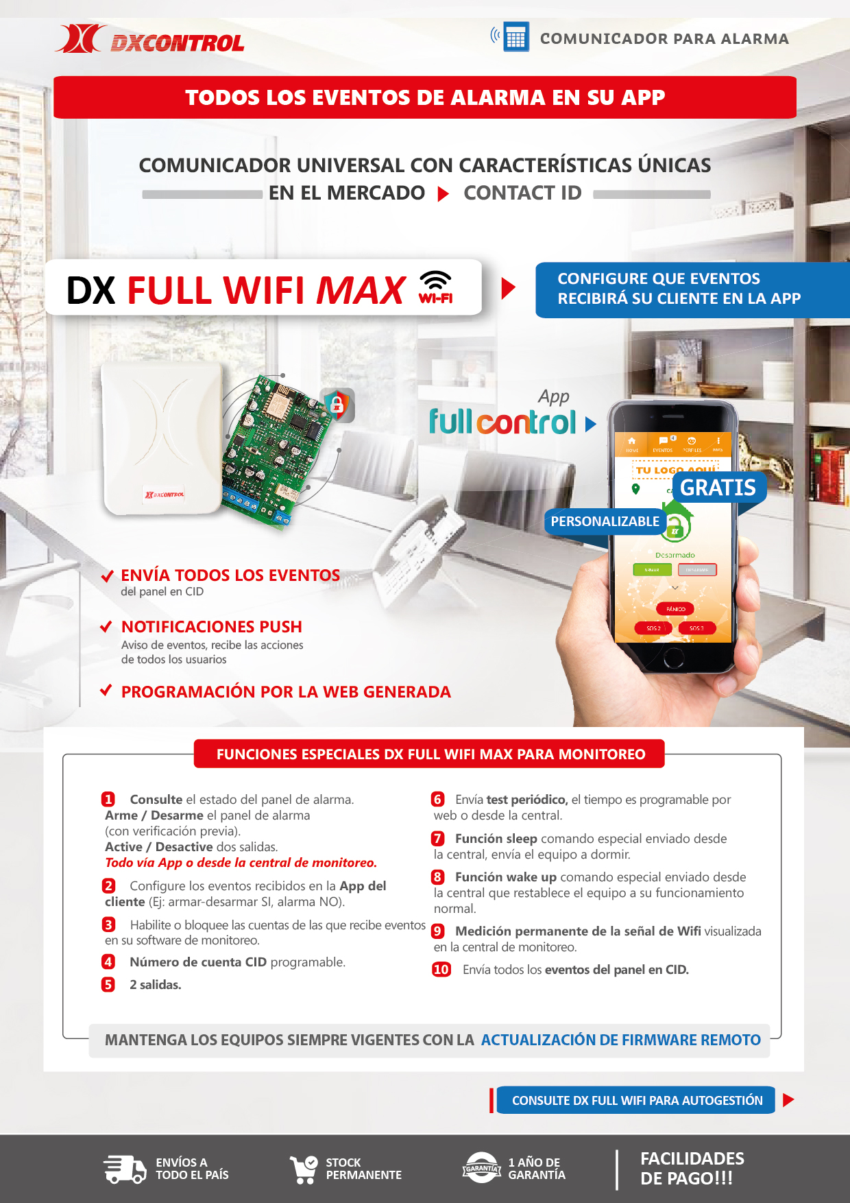 Recepción de los eventos generados por el dx full wifi en el soft de monitoreo programable según necesidad